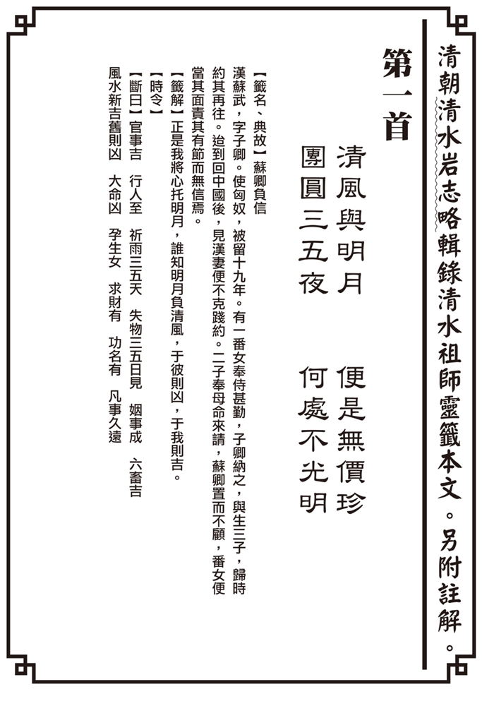 清朝清水岩志略輯錄清水祖師靈籤 第1首