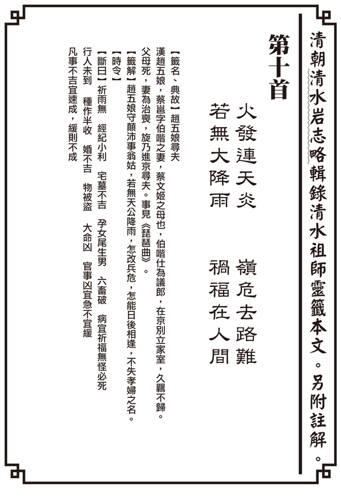 • 清朝清水岩志略輯錄清水祖師靈籤 第10首