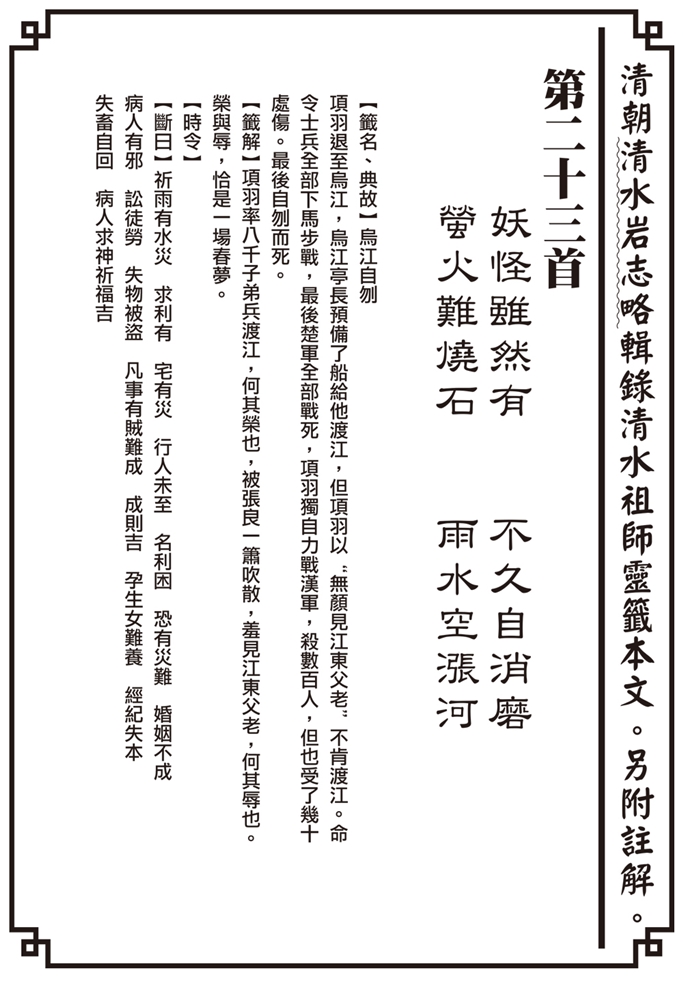 清朝清水岩志略輯錄清水祖師靈籤 第23首
