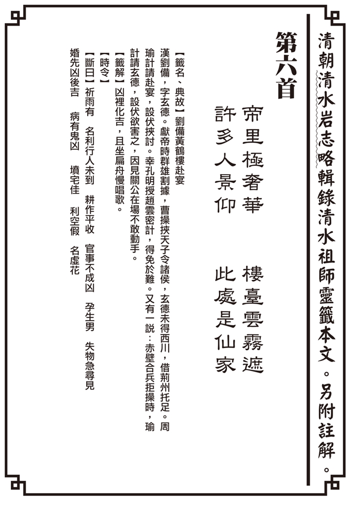 • 清朝清水岩志略輯錄清水祖師靈籤 第6首